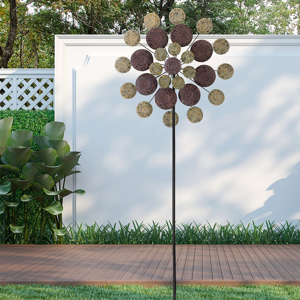 Ob als Gartenstecker im Beet oder auf der Rasenfläche - dieses beeindruckend große Windspiel ist ein auffälliges Accessoire, an dem bestimmt keiner vorbeigeht ohne einen neidischen Blick darauf zu werfen. Auch die Standfestigkeit dieses Windspiels ist genauestens durchdacht und getestet. Die 5-zackige Bodenverankerung sowie der verschraubbare Stab entsprechen der Qualität, die Sie sich wünschen.