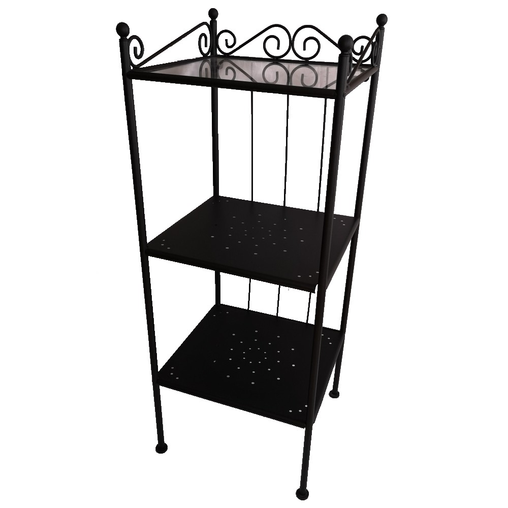 Ein sehr dekoratives Standregal aus Metall. Vielseitig einsetzbar zum Beispiel in der Diele, dem Fluhr, Wohnzimmer, Esszimmer, Gästezimmer, Bad oder im Wintergarten. Der Rahmen besteht aus beschichteten Metallstangen. (Lieferung erfolgt bereits aufgebaut)