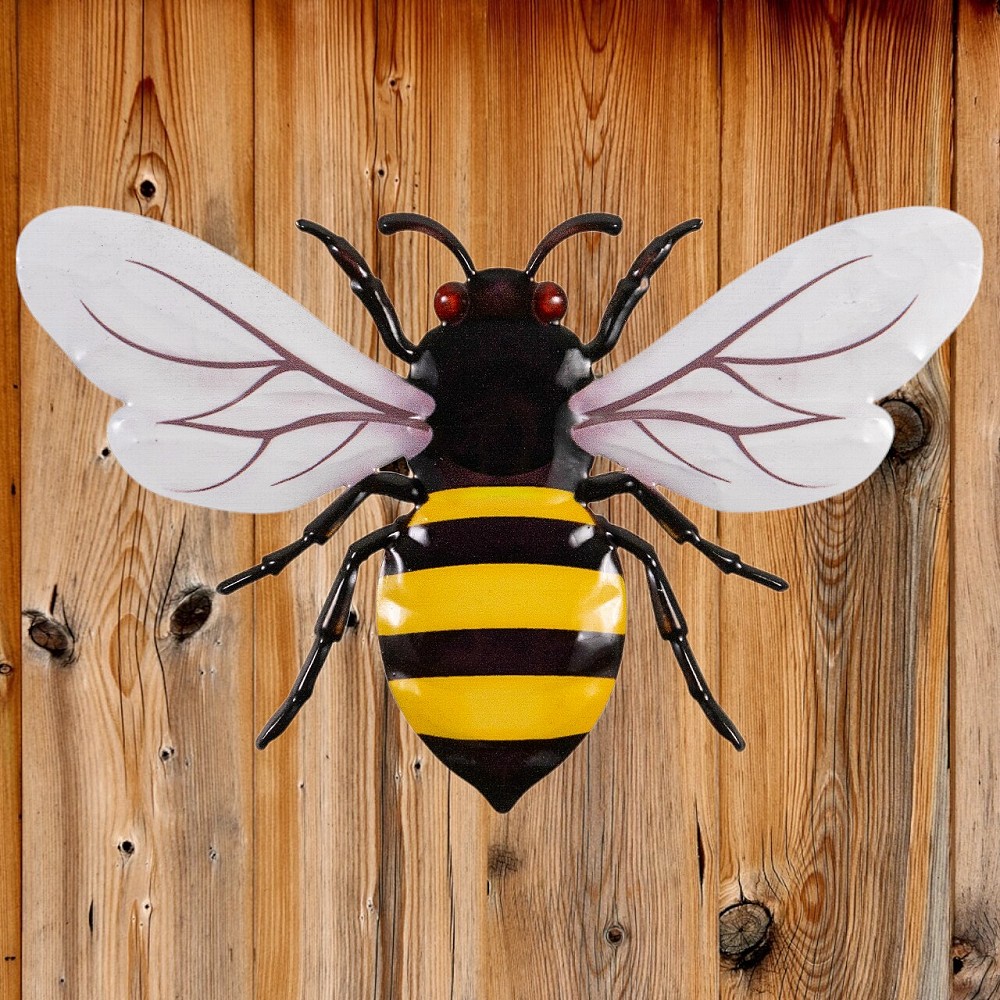 Entdecken Sie unsere zauberhafte Bienen-Wanddekoration! Unsere Biene mit einer Größe von 25 x 16 x 1 cm besticht durch ihr verspieltes und farbenfrohes Design. Der Körper ist mit einem detaillierten Farbverlauf in gelb/schwarzer Farbe bedruckt. Diese Biene eignet sich hervorragend als Dekorationsobjekt im Haus oder auf der Terrasse. Das hochwertige Metall ist wetterfest. Eine praktische Wandbefestigung befindet sich auf der Rückseite.