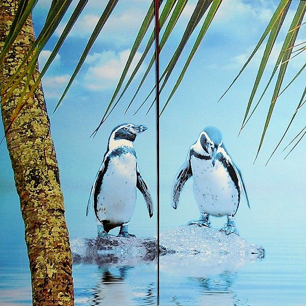 Ausgefallen und Originell der Kunstdruck TROPICAL PINGUINS. Wer hätte je gedacht das Pinguine und Palmen zusammenpassen!? Dieses 4 teilige Bild besticht durch sein ausgefallenes Motiv und wirkt dabei ganz und gar nicht kalt oder kühl! Ein toller Kunstdruck bespannt auf Holzrahmen.