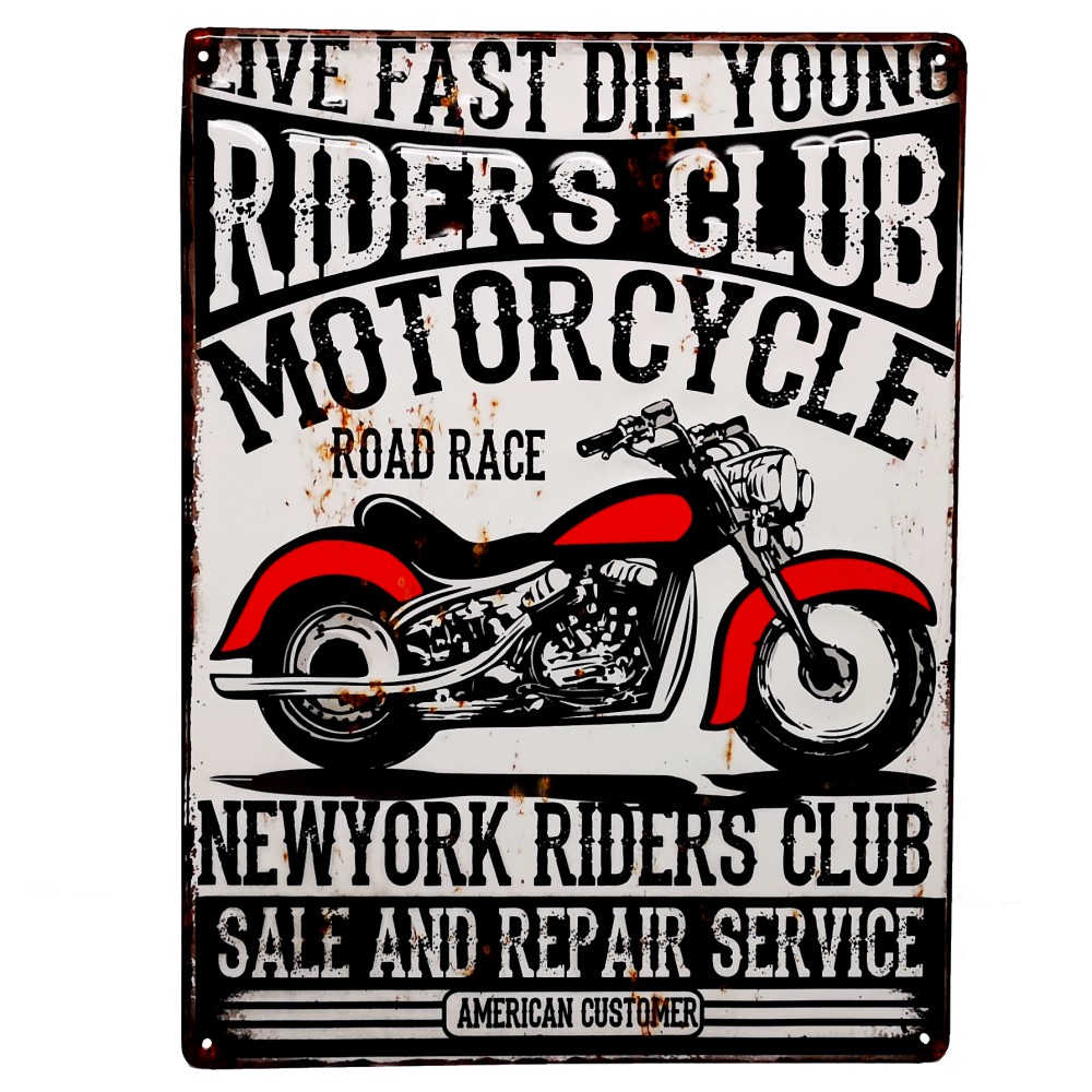 Eine tolle Deko für ihr Zuhause. Egal ob Jugendzimmer, Garage oder Wohnzimmer - dieses Schild im Nostalgie Look. Neu hergestellt nach alten Vorlagen. Macht etwas her und zieht Blicke auf sich. Eine wunderbare Wanddeko für alle Motorrad Fans. Gestanztes Blechschild, bedruckt und mit eingearbeiteten Gebrauchsspuren. Diese sorgen für den antiken Charakter und unterstreichen damit das nostalgische Aussehen.