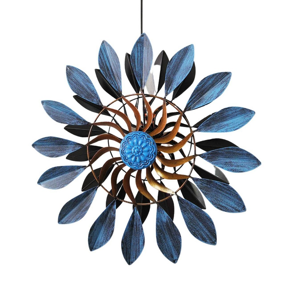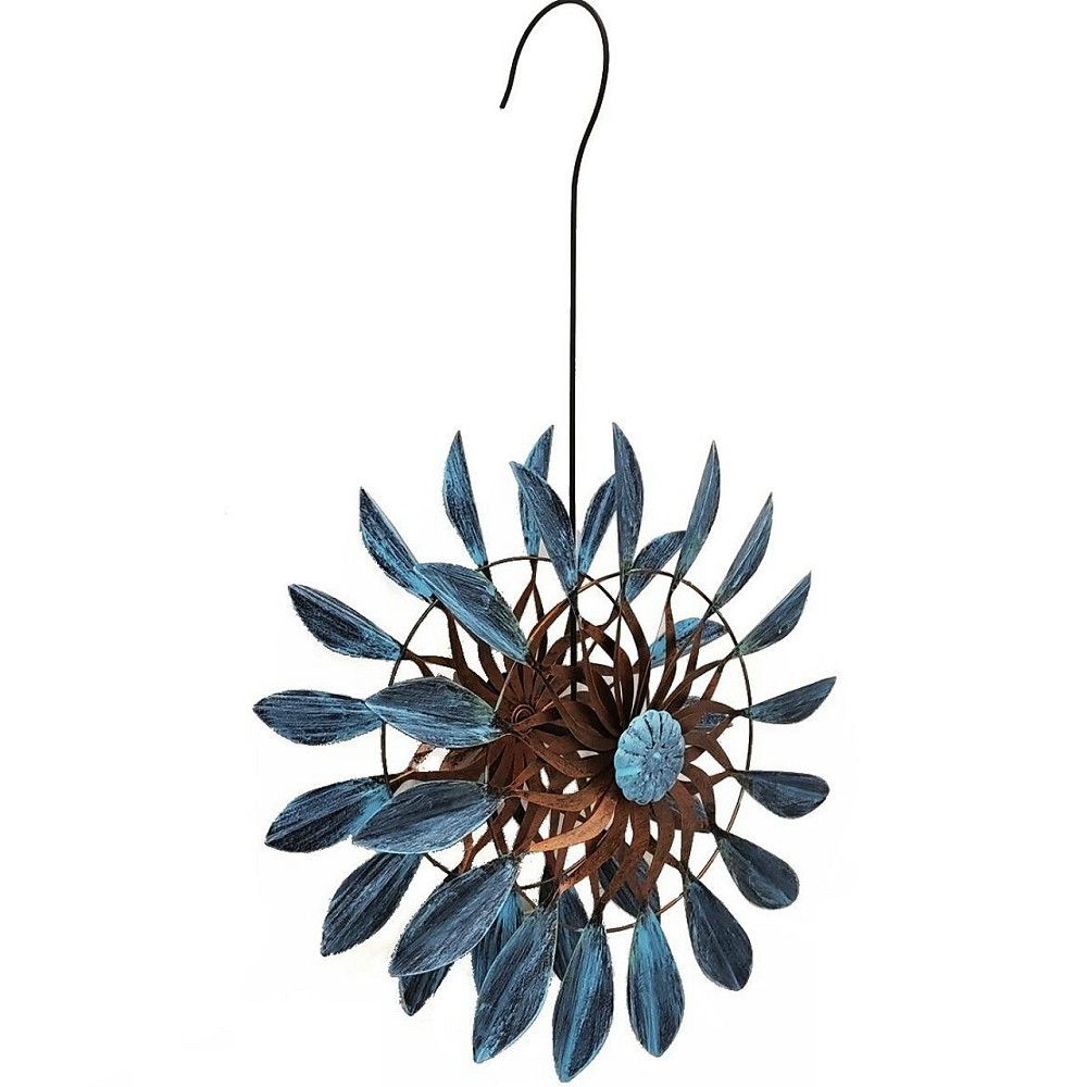 Dieses dekorative Doppelwindrad aus Metall ist ein echter Blickfang für Garten, Balkon oder Terrasse. Die zwei gegenläufig drehenden Windräder erzeugen ein faszinierendes, lebendiges Spiel aus Bewegung und Farbe. Durch die harmonische Kombination aus blauen Blättern und einem rostbraunen Mittelteil wirkt das Windrad zugleich modern und natürlich. Gefertigt aus pulverbeschichtetem, lackiertem Metall, überzeugt das Hängedekoelement durch seine hohe Langlebigkeit und Wetterfestigkeit. Dank der stabilen Aufhängung lässt sich das Windrad einfach an Haken, Pergolen oder Ästen befestigen und setzt überall stilvolle Akzente – das ganze Jahr über.