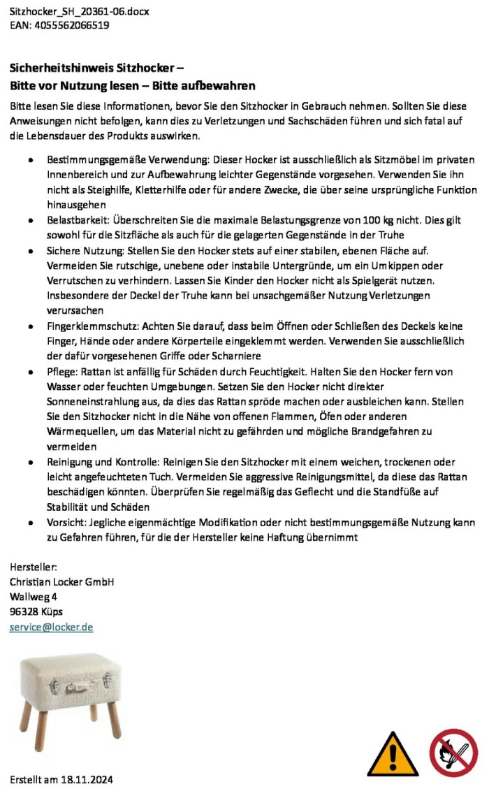 Dieser TRENDY Polsterhocker in Kofferform aus creme-weißem Stoff und mit silbernen Metallschließen auf hellen Holzbeinen ist in jeder Wohnung ein Hingucker und ein praktischer Helfer zugleich. Der handliche Hocker ist praktisch zum Beispiel als Sitzgelegenheit für den Flur zum Schuhe anziehen oder im Schlafzimmer vor dem Schminkspiegel. Und wenn mal wieder mehr Gäste gekommen sind ist er auch schnell griffbereit. Im Inneren des Sitzkoffers ist viel Platz und es lässt sich allerhand verstauen, so erfüllt der Polsterhocker gleich zwei Nutzen und sieht dabei auch noch fabelhaft aus. Der Hocker ist bequem und durch sein Koffer Form erinnert er immer an die schöne Reiseerlebnisse.