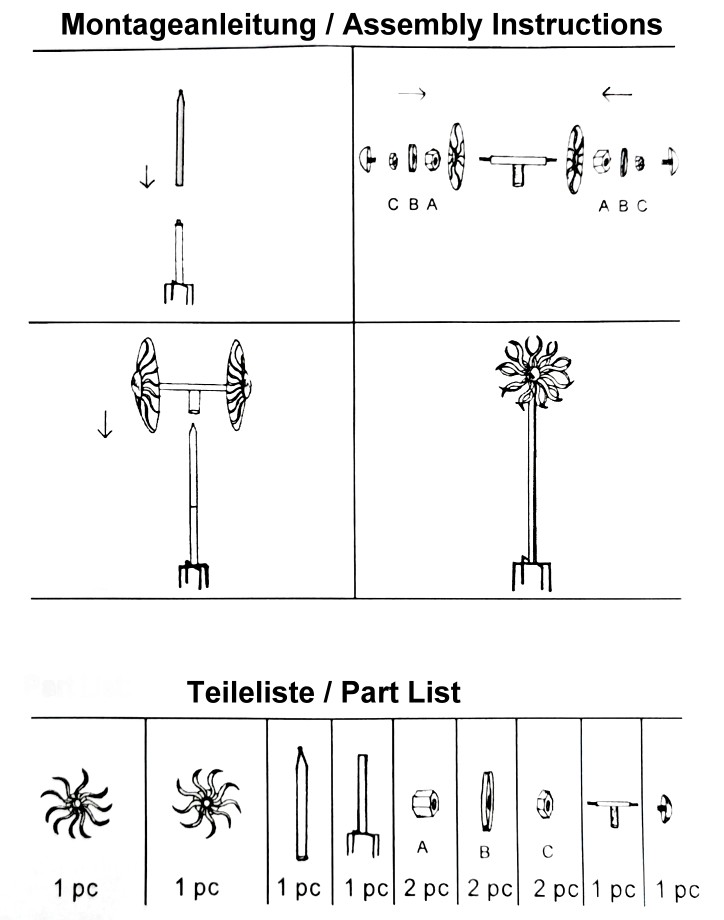 Wunderschönes großes Windrad JULIA. Wurde aufwendig und liebevoll aus Metall gearbeitet. Eine außergewöhnliche und beeindruckende Dekoidee für Ihren Garten. Das Windrad besteht aus 2 hintereinander angebrachten Metall Sonnen welche sich senkrecht drehen. Einfach bezaubernd anzusehen! Die Lieferung erfolgt teilzerlegt, kinderleichter Aufbau - einfach zusammenstecken - fertig! Damit machen Sie jeden Gartenfreund glücklich!