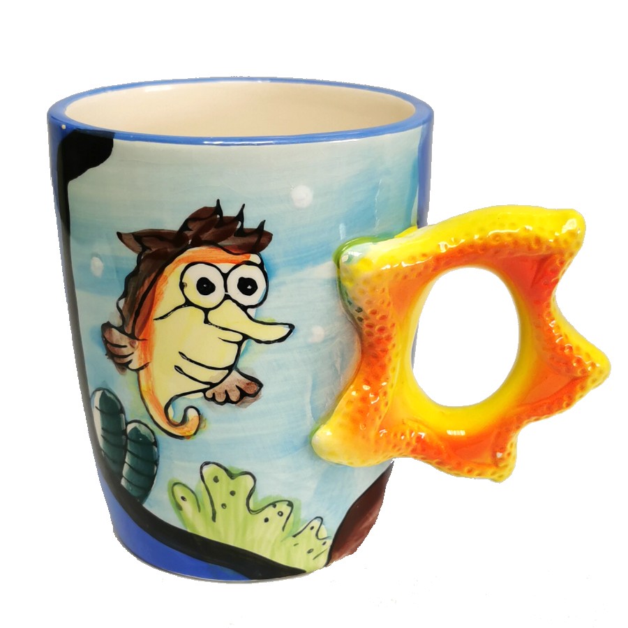 Kaffeetasse Tasse SEESTERN SEEPFERDCHEN blau Handbemalt Keramik