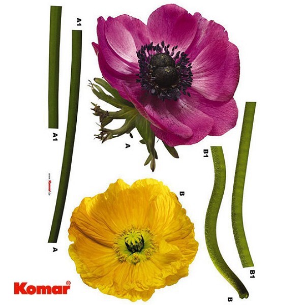 KOMAR® Freestyle Wandtattoo Decosticker Anemone BLUMEN 6tlg. Aufkleber