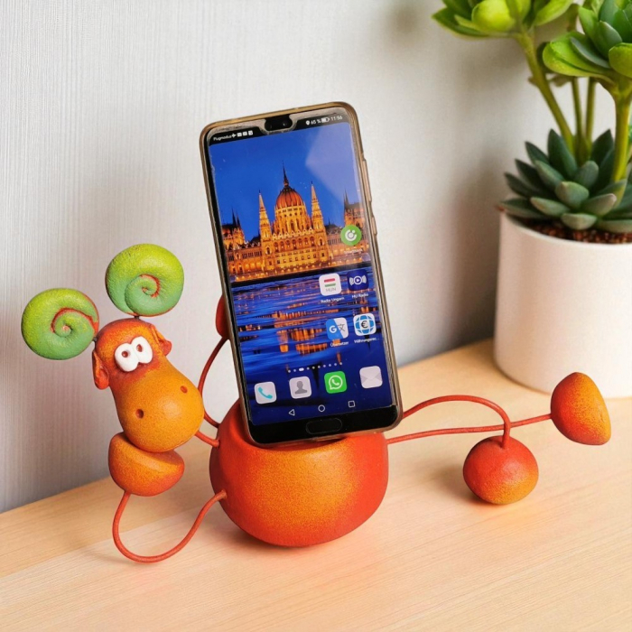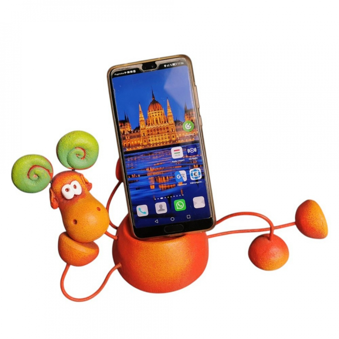 Praktisch trifft auf witzig! Dieser originelle Handyhalter in Form eines fröhlichen Steinbocks sorgt für gute Laune und Ordnung zugleich. Ob als Smartphone-Ständer für Videos und Anrufe oder als Schlüsselablage im Eingangsbereich - der keine Helfer ist vielseitig einsetzbar. Gefertigt aus robustem schwerem Polystein und Metall, überzeugt er mit Stabilität und langlebiger Qualität. Die frische Farbkombination aus Orange und Grün macht ihn außerdem zu einem dekorativen Blickfang in jedem Raum.