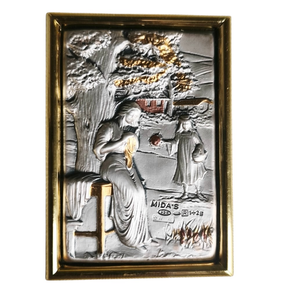 Gerahmtes MIDA Silberrelief aus 925 Sterling Silber 3D-Flachrelief