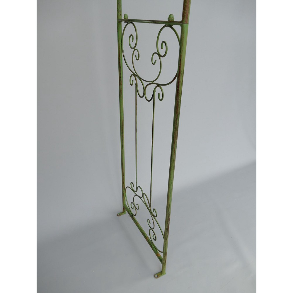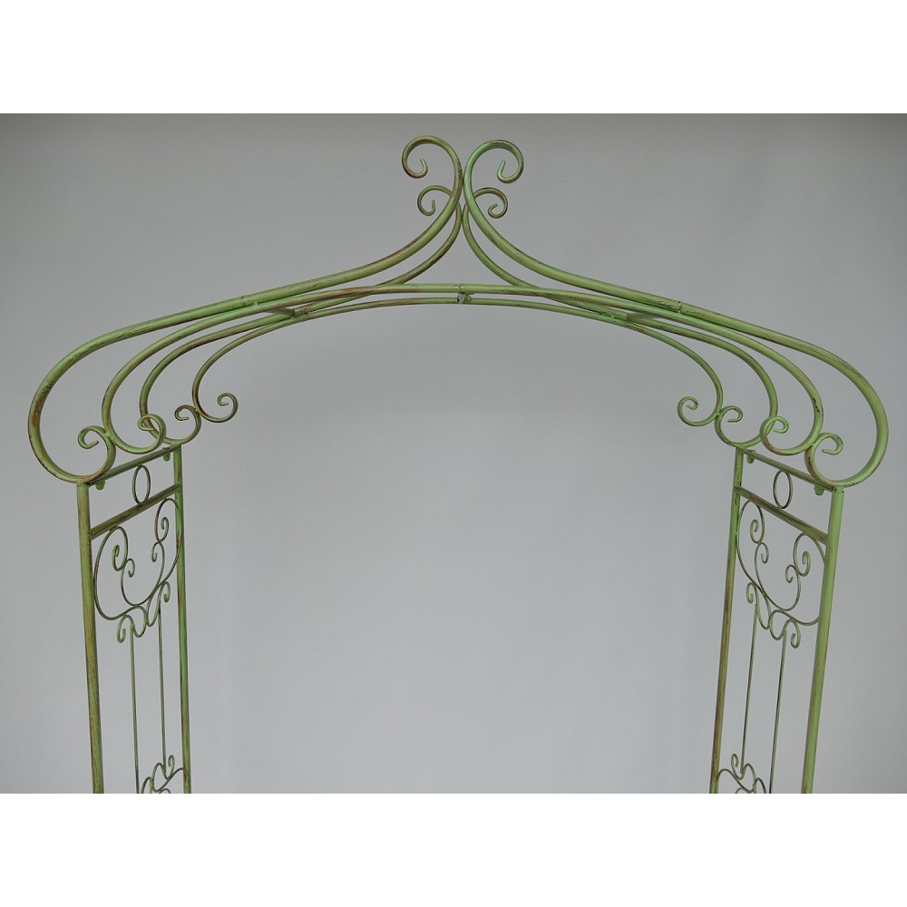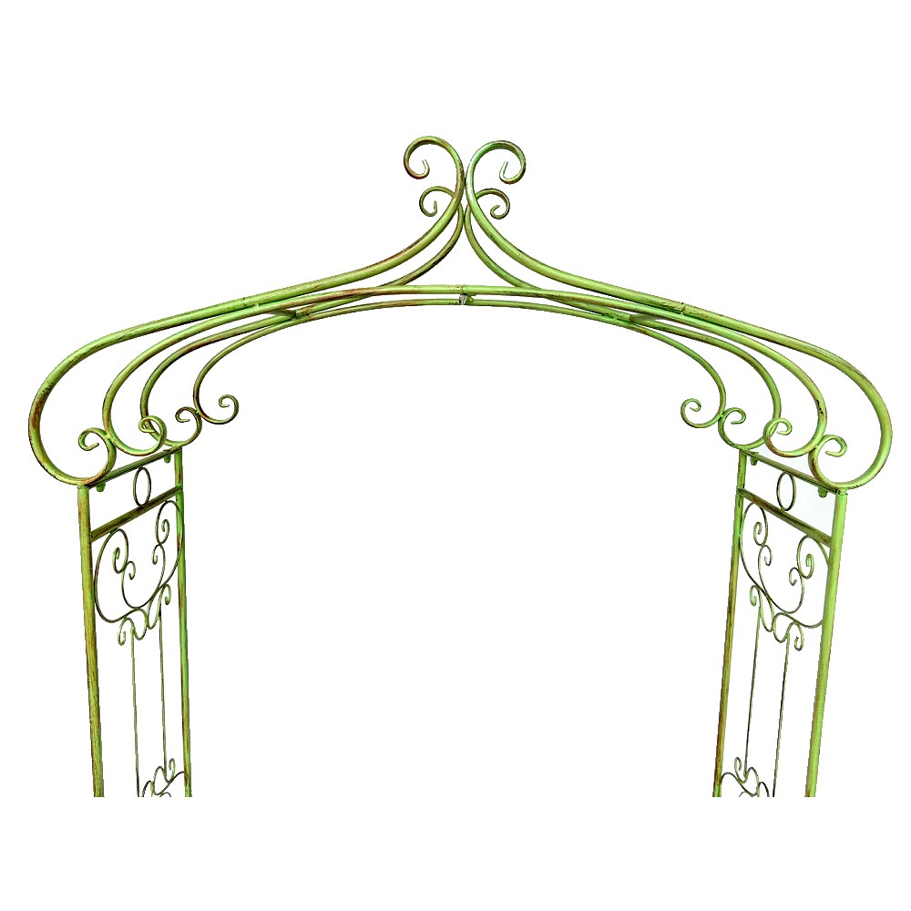 Das gewisse Extra für Ihren Garten. Rosenbogen/Rankhilfe aus stabilem Metall, verziert mit einer dekorativen Spitze. Diese Rankhilfe eignet sich für alle Rank- und Kletterpflanzen wie zum Beispiel Efeu, Clematis oder Rosen. Optimal aber auch für Nutzpflanzen z.B. Weintrauben oder Brombeeren. Er ist frei stehend nutzbar. Die Seitenteile können im weichen Boden mittels der mitgelieferten größen Nägel verankert werden. Optional kann der Rosenbogen aber auch über die vorhandenen Bohrlöcher auf einem festen Fundament verschraubt werden (hierfür sind die Schrauben nicht enthalten).