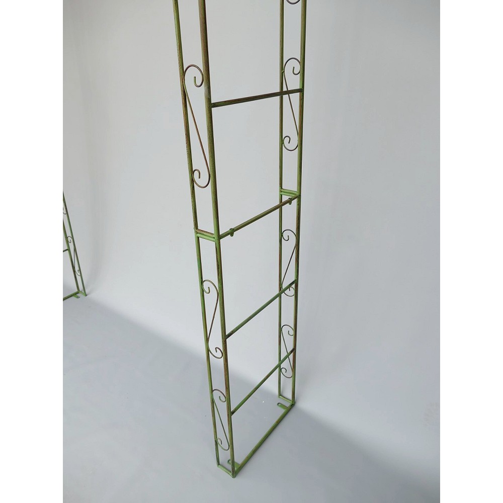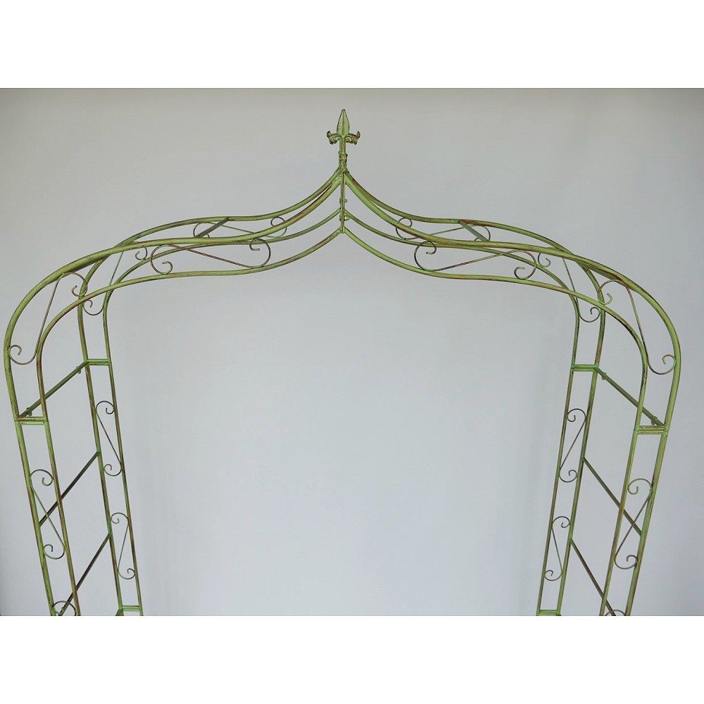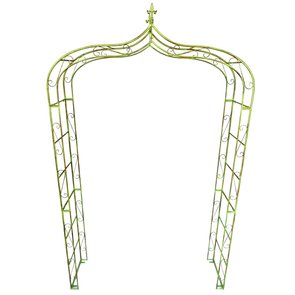 Das gewisse Extra für Ihren Garten. Rosenbogen/Rankhilfe Tor aus stabilem Metall, verziert mit einer dekorativen Spitze. Diese Rankhilfe eignet sich für alle Rank- und Kletterpflanzen wie zum Beispiel Efeu, Clematis oder Rosen. Optimal aber auch für Nutzpflanzen z.B. Weintrauben oder Brombeeren. Er ist frei stehend nutzbar. Die Seitenteile können im weichen Boden mittels der mitgelieferten größen Nägel verankert werden. Optional kann der Rosenbogen aber auch über die vorhandenen Bohrlöcher auf einem festen Fundament verschraubt werden (hierfür sind die Schrauben nicht enthalten).