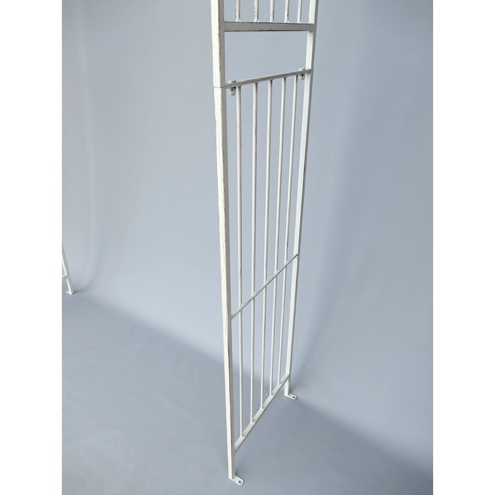 Das gewisse Extra für Ihren Garten. Rosenbogen/Rankhilfe Tor aus stabilem Metall. Diese Rankhilfe eignet sich für alle Rank- und Kletterpflanzen wie zum Beispiel Efeu, Clematis oder Rosen. Optimal aber auch für Nutzpflanzen z.B. Weintrauben oder Brombeeren. Er ist frei stehend nutzbar. Die Seitenteile können im weichen Boden mittels der mitgelieferten größen Nägel verankert werden. Optional kann der Rosenbogen aber auch über die vorhandenen Bohrlöcher auf einem festen Fundament verschraubt werden (hierfür sind die Schrauben nicht enthalten).