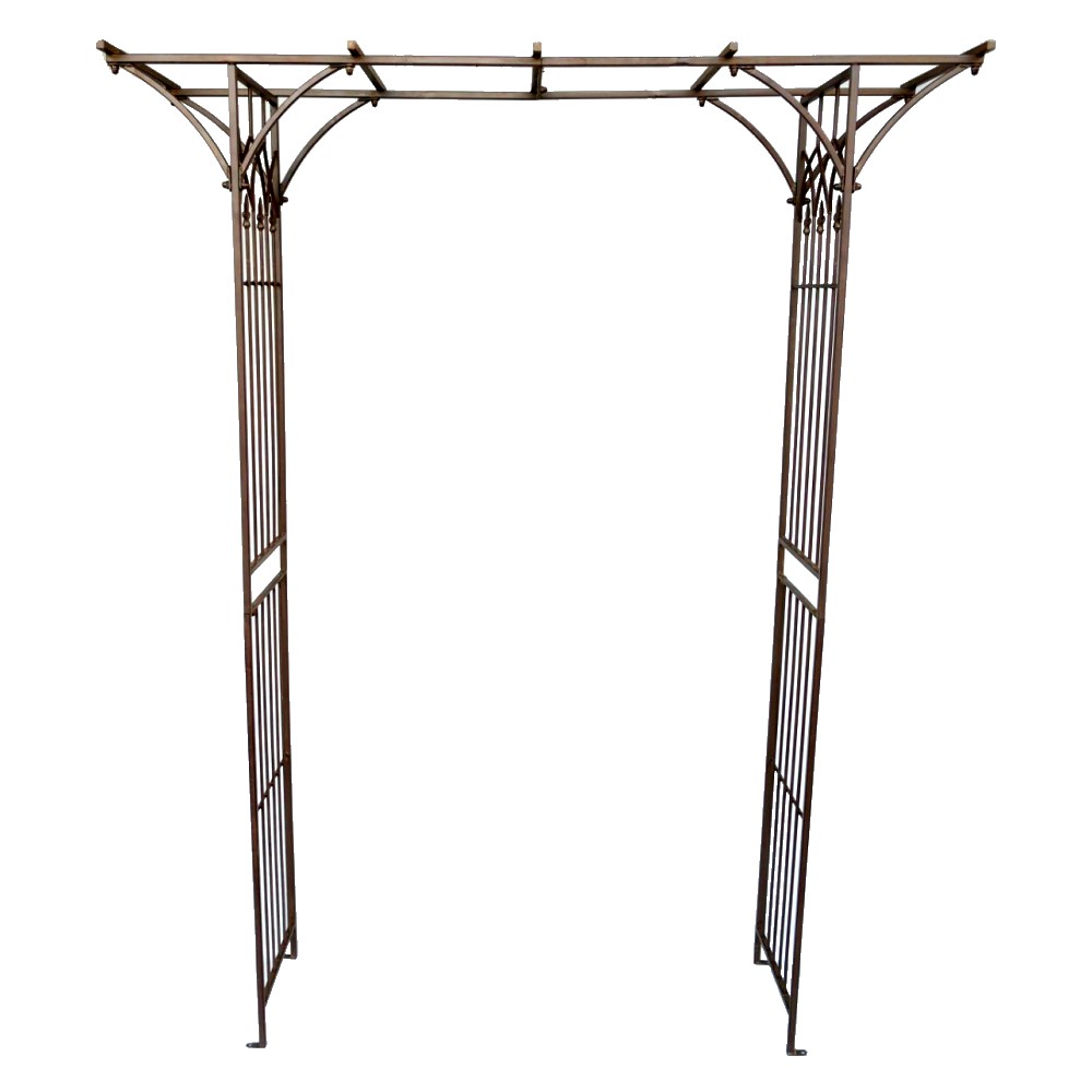 Das gewisse Extra für Ihren Garten. Rosenbogen/Rankhilfe Tor aus stabilem Metall. Diese Rankhilfe eignet sich für alle Rank- und Kletterpflanzen wie zum Beispiel Efeu, Clematis oder Rosen. Optimal aber auch für Nutzpflanzen z.B. Weintrauben oder Brombeeren. Er ist frei stehend nutzbar. Die Seitenteile können im weichen Boden mittels der mitgelieferten größen Nägel verankert werden. Optional kann der Rosenbogen aber auch über die vorhandenen Bohrlöcher auf einem festen Fundament verschraubt werden (hierfür sind die Schrauben nicht enthalten).