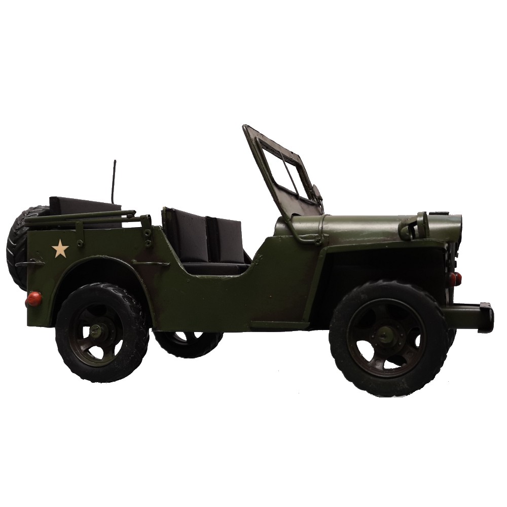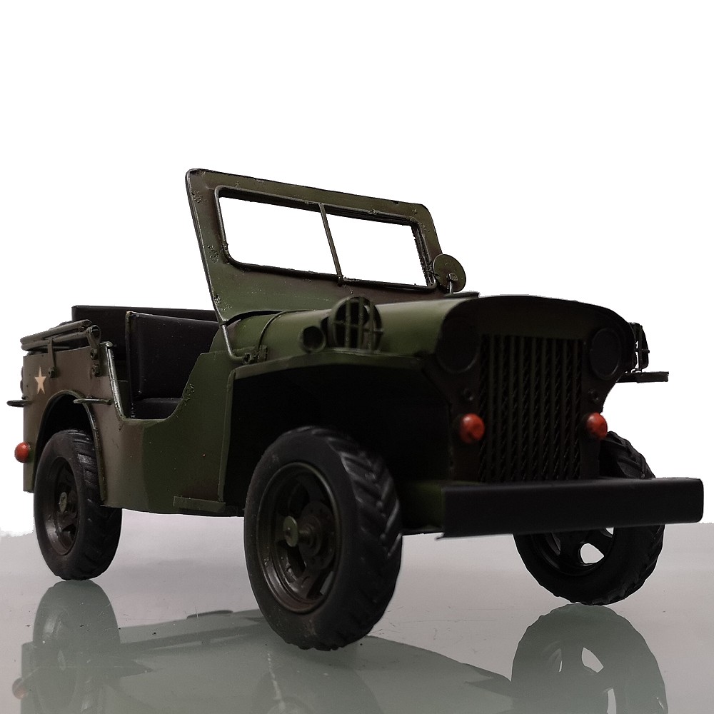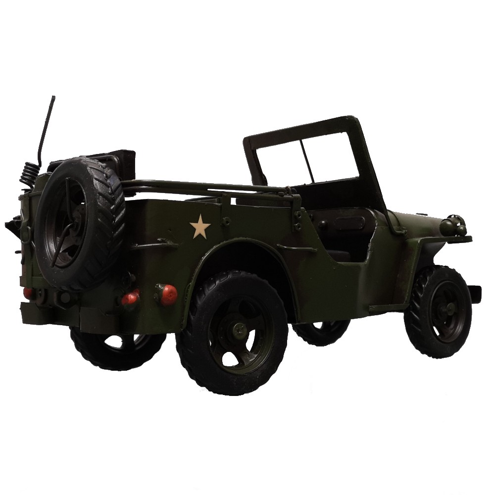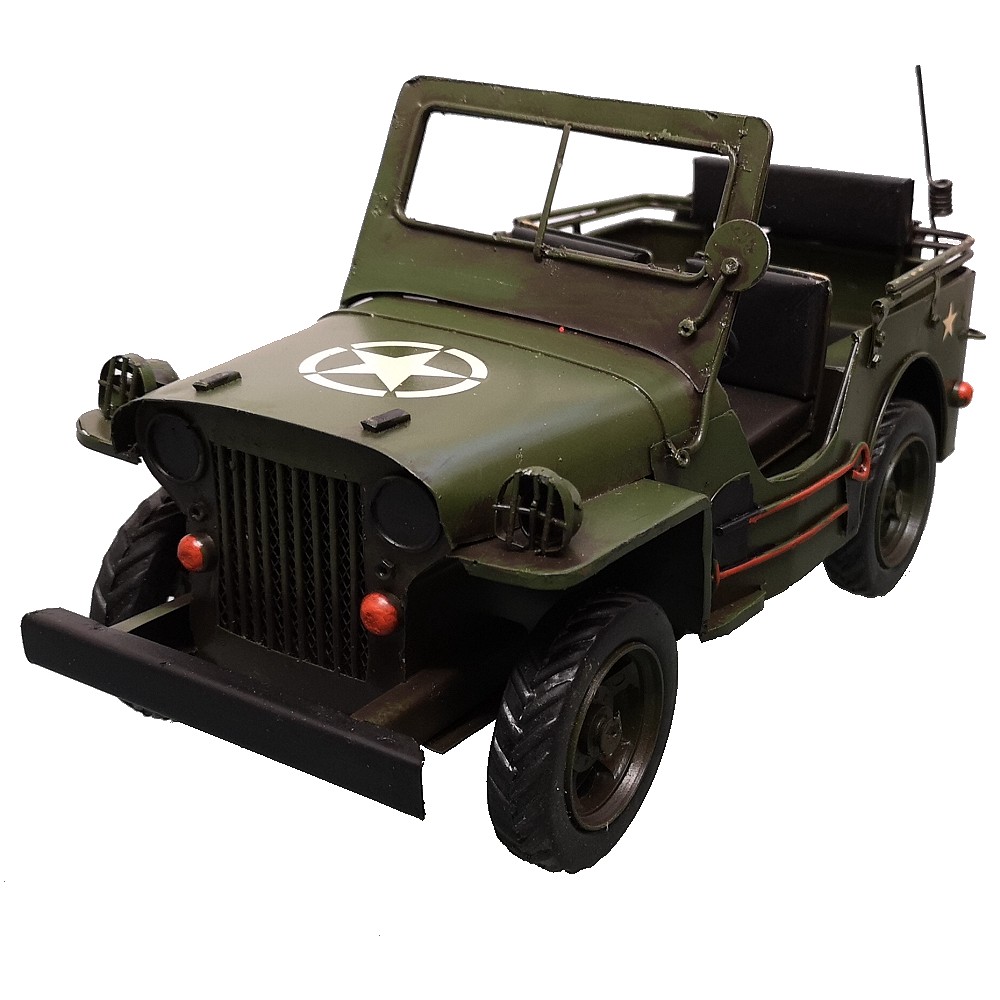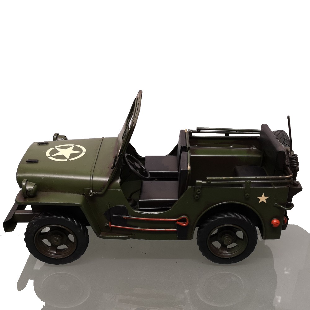 Bei diesem tollen Modell handelt es sich um eine Neuzeitliche Reproduktion eines US Army JEEP Modells der 70er Jahre. Es ist handgefertigt und handbemalt. Unregelmäßigkeiten bei der Bemalung und auch bei kleineren Details unterstreichen den nostalgischen Charme dieses Artikels und auch zugleich die Herstellung in Handarbeit. Info: es handelt sich um KEIN SPIELZEUG!