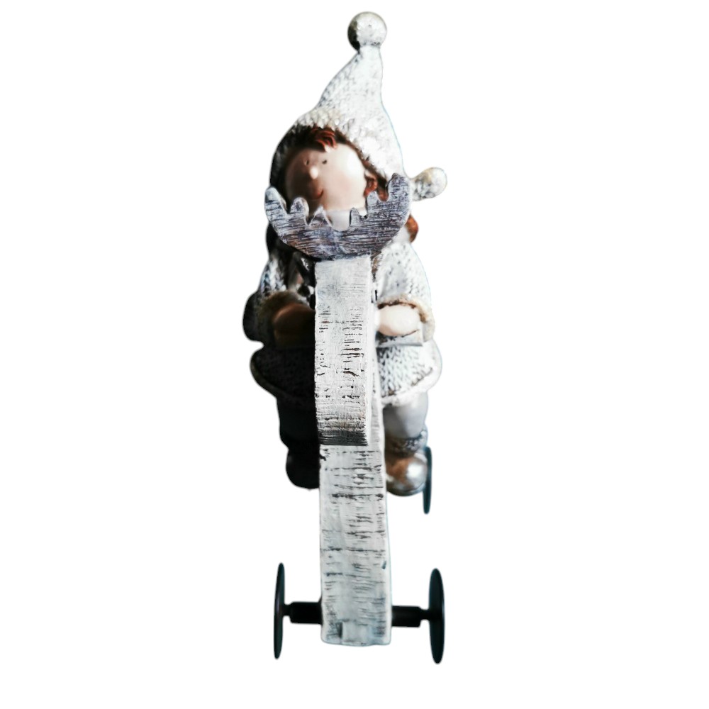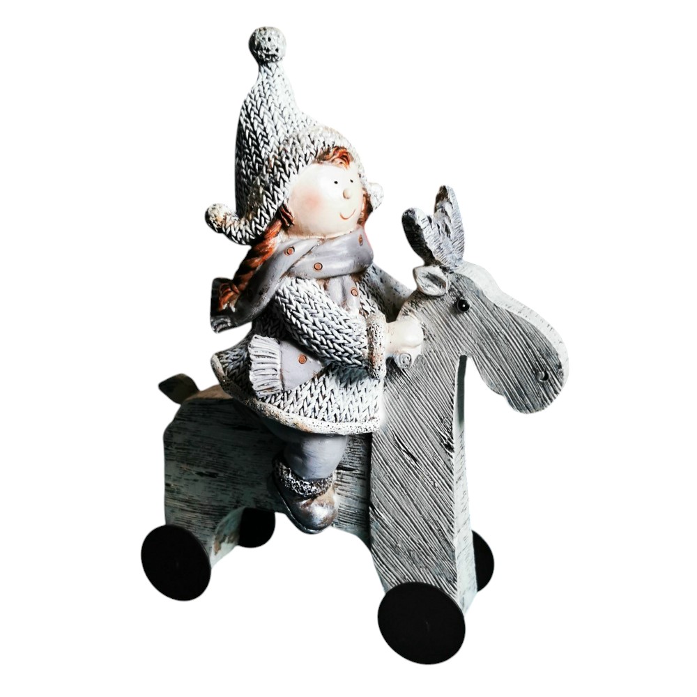 Zauberhafte Winterfigur auf rollendem Rentier