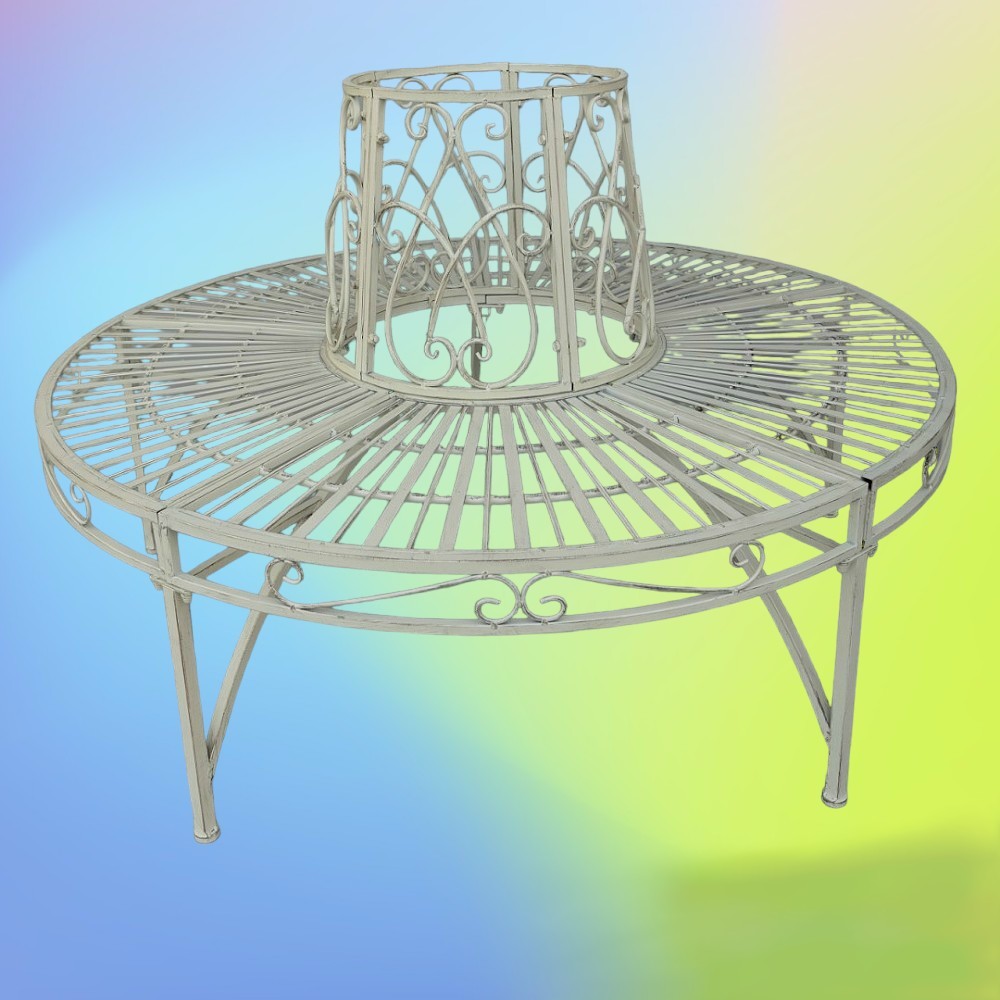 Baumbank CONTESSA Antik Look WEISS Eisen Parkbank Gartenbank