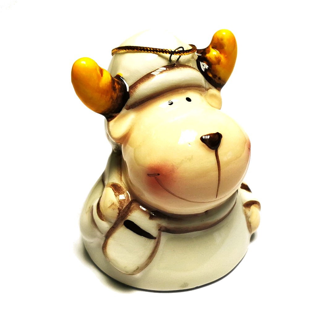 Glöckchen RENTIER ELCH Weihnachtsglocke Christbaumschmuck Handbemalt Keramik