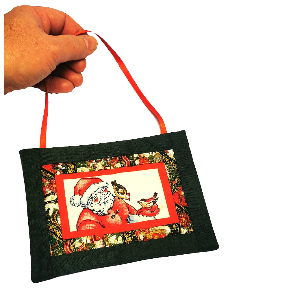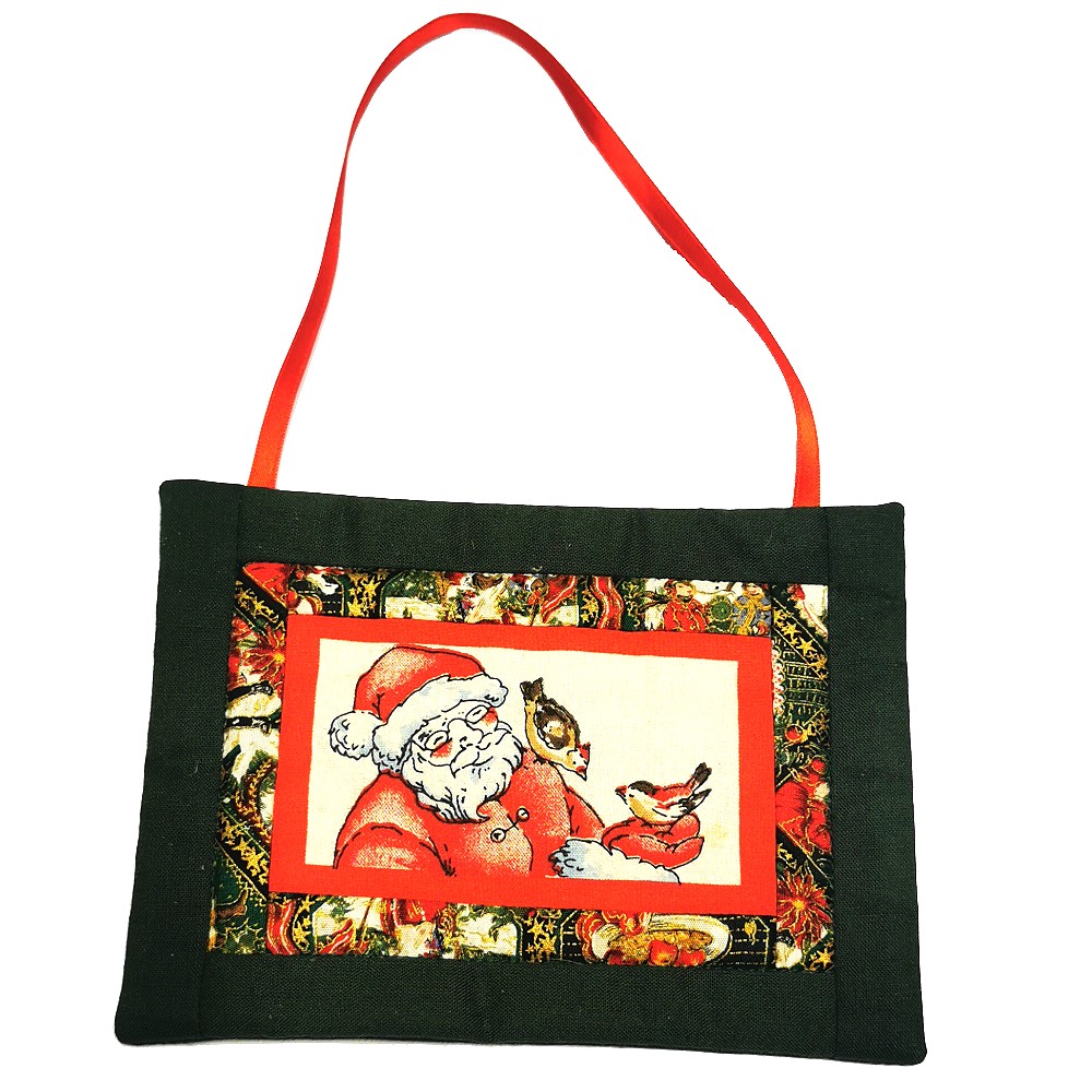 Stoffschild WEIHNACHTSMANN mit VÖGEL Deko Aufhänger